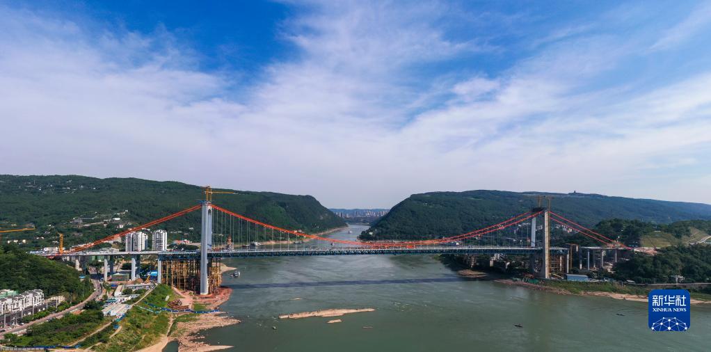 7月12日拍摄的重庆郭家沱长江大桥(无人机拼接照片)。