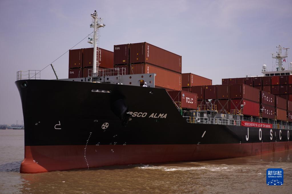 当日,江苏远洋“远诚”轮从南京港龙潭集装箱有限公司801泊位缓缓驶离,这标志着江苏省港口集团“南京-太仓-海防-胡志明”东南亚集装箱外贸航线正式开通。