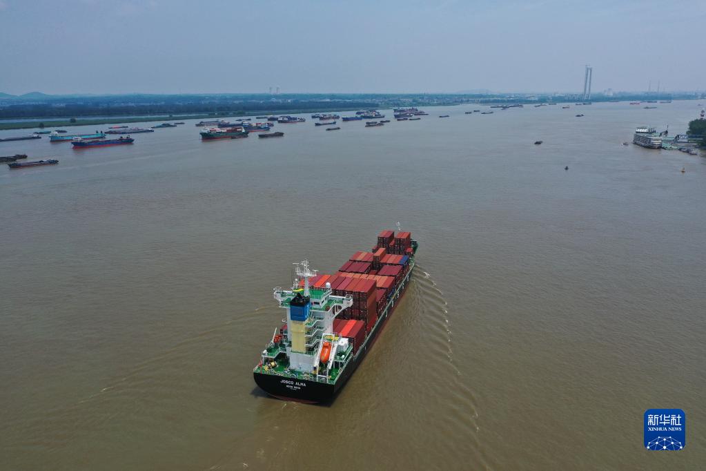 7月13日,江苏远洋“远诚”轮启航(无人机照片)。