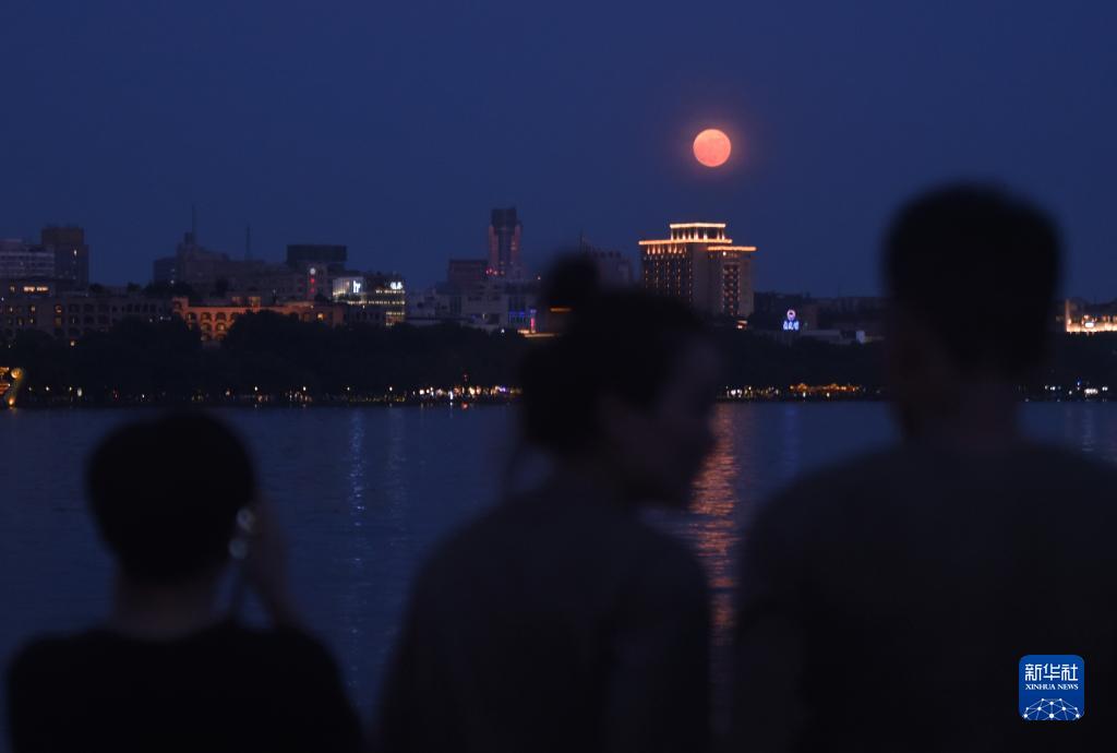 7月13日,市民在杭州西湖观看“超级月亮”。