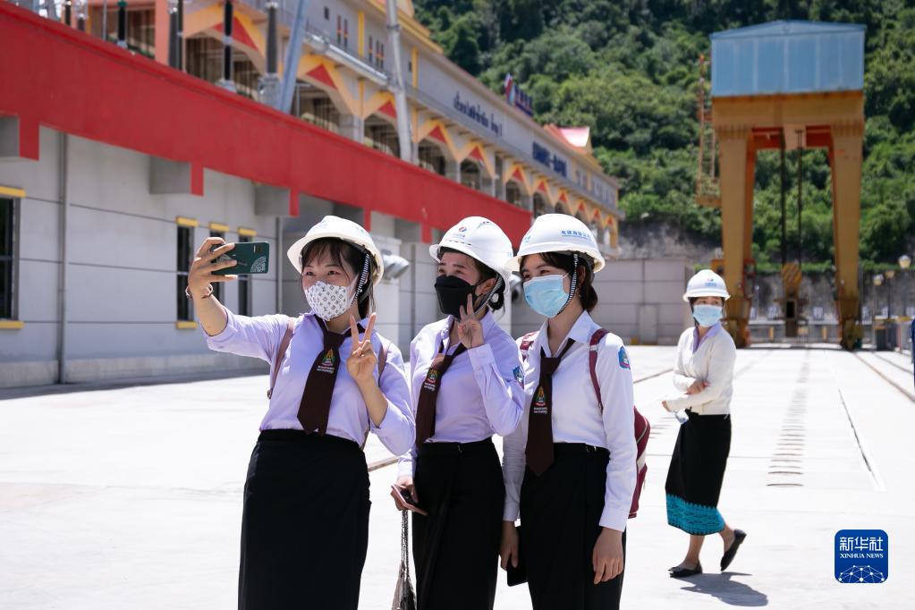 7月13日,老挝高校学生参观南欧江一级水电站。
