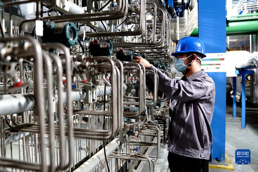 7月14日,上海核能装备测试验证中心工程技术人员在试验厂房内检查计量仪表。