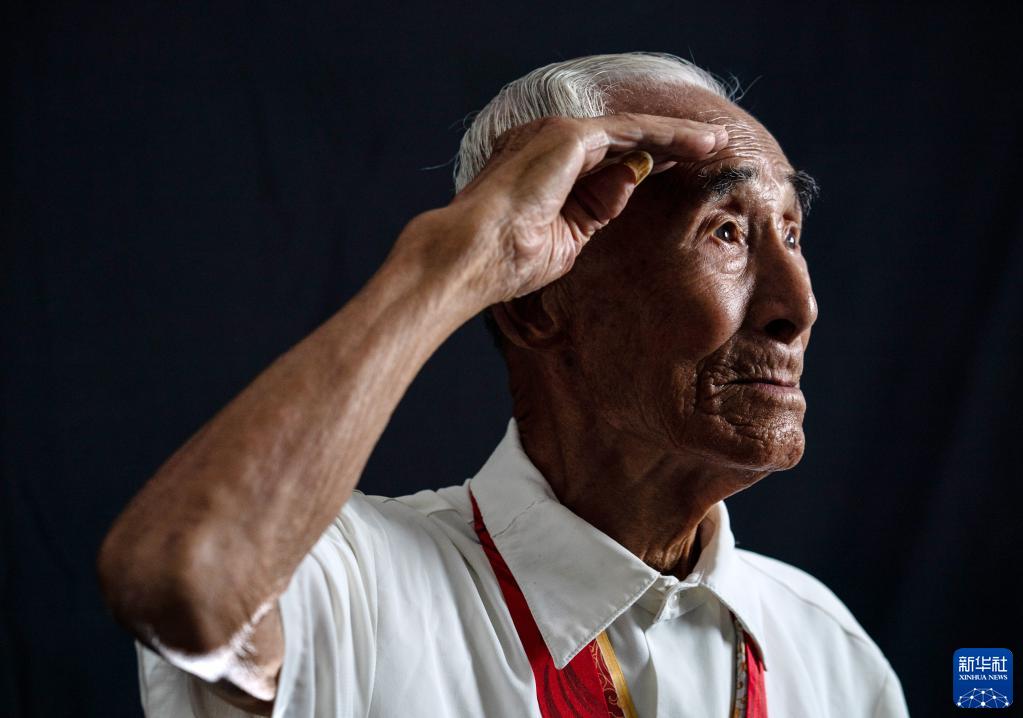 6月22日在江苏省仪征市拍摄的抗战老战士曹玉佃。新华社记者 李博 摄