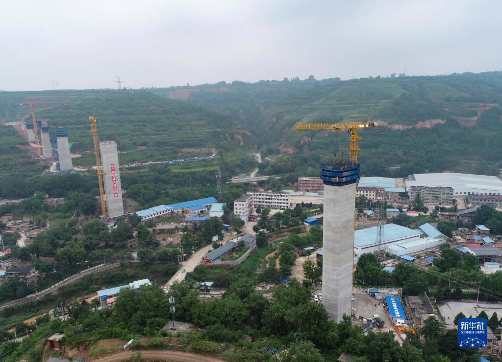 这是7月15日拍摄的西延高铁王家河特大桥施工现场(无人机照片)。