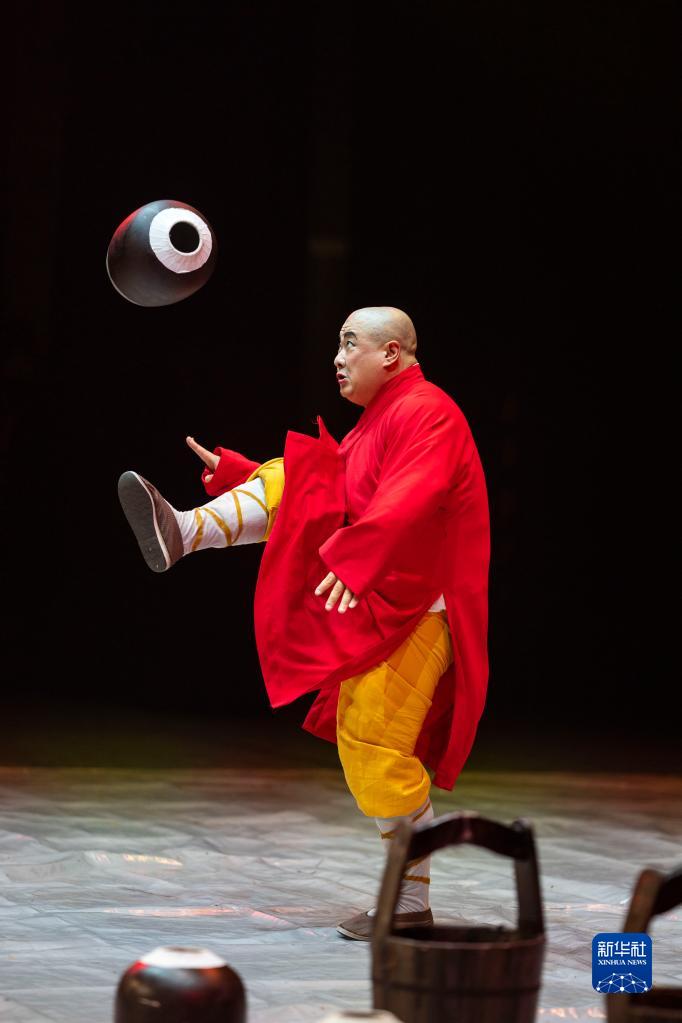 7月15日,演员在滑稽节目《三个和尚》的表演中。