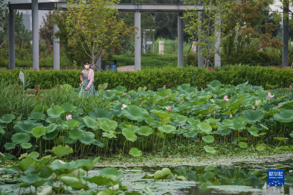 7月15日,市民在安南湿地环保主题公园内散步。新华社记者 彭子洋 摄