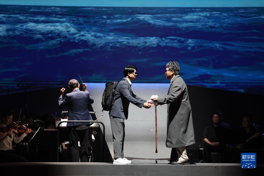 当日,原创音乐剧《富春璧合》在福建大剧院举行线下首演。该剧以名画《富春山居图》的传奇经历为蓝本,讲述了同根同源的三代人共盼团圆的动人故事。