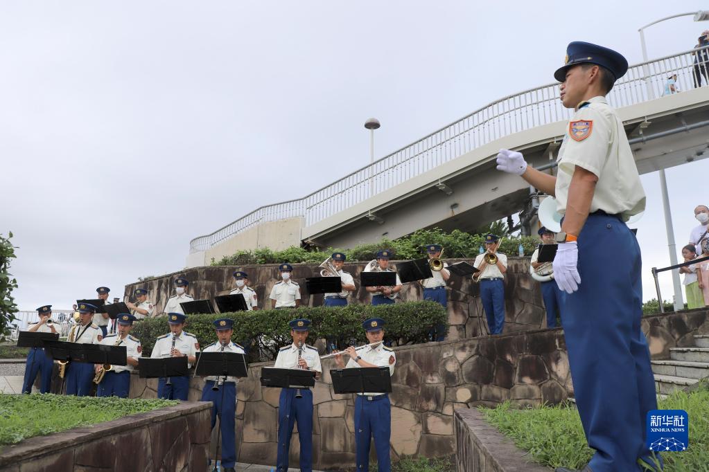 7月17日,在日本神奈川县藤泽市的聂耳纪念广场,乐队在纪念活动上奏响《义勇军进行曲》。