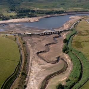这是7月19日在英国曼彻斯特附近拍摄的几近干涸的伍德黑德水库(无人机拍摄)。