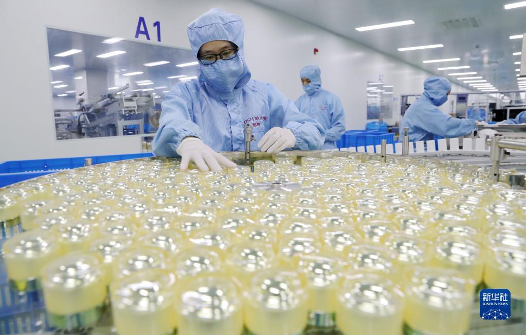 7月20日,浙江省湖州市德清县一家珍珠生产企业的工人在化妆品生产线上忙碌。