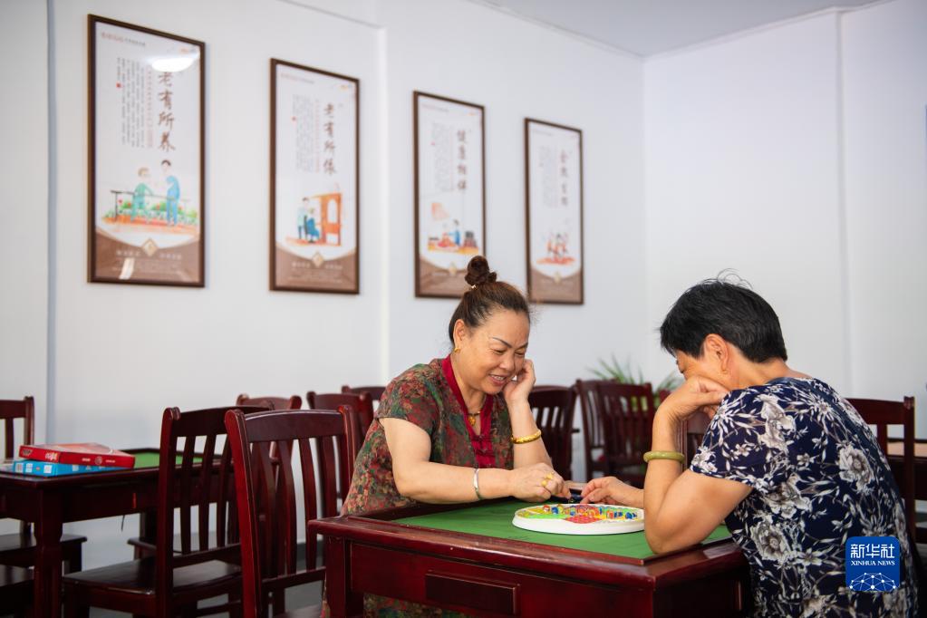 7月20日,老人在汉寿县龙阳街道社区日间照料中心下跳棋。新华社记者 陈思汗 摄