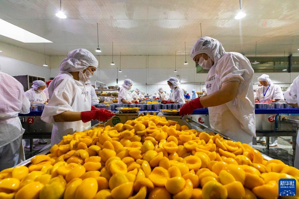 目前正值黄桃上市旺季,湖北省宜昌市秭归县将当地丰收的黄桃加工成罐头,出口到海外市场。近年来,该县采取“龙头企业+基地+合作社+农户”方式发展黄桃产业,农民将收获的黄桃直供企业进行深加工销售,帮助农民增收,促进乡村振兴。