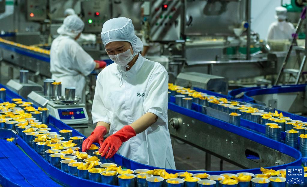 目前正值黄桃上市旺季,湖北省宜昌市秭归县将当地丰收的黄桃加工成罐头,出口到海外市场。近年来,该县采取“龙头企业+基地+合作社+农户”方式发展黄桃产业,农民将收获的黄桃直供企业进行深加工销售,帮助农民增收,促进乡村振兴。