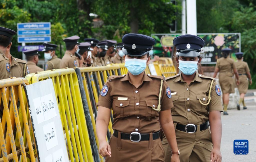 7月20日,在斯里兰卡首都科伦坡,军警在议会出入口执勤。
