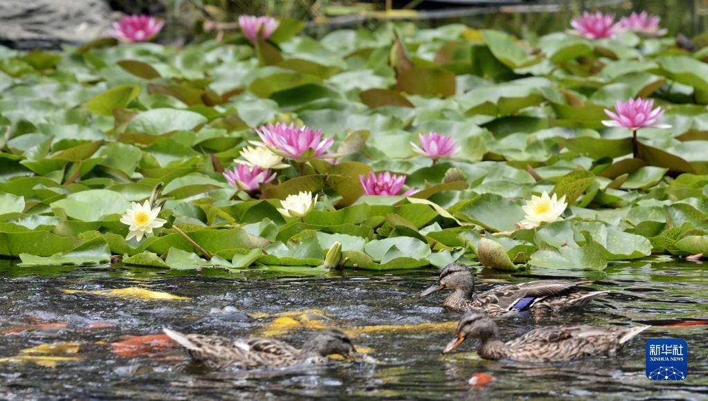 入伏以来,北京市圆明园遗址公园荷花盛放,吸引市民和游客前来消暑赏荷。