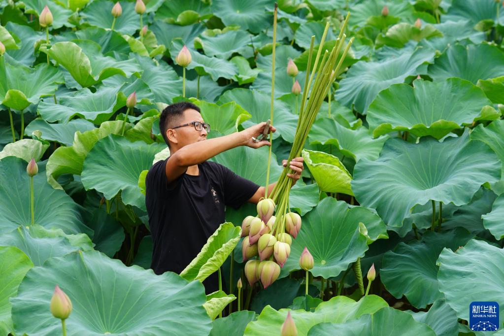 暑期,重庆市北碚区静观镇双塘村荷花培育基地数十种荷花相继盛开。当地花木经纪人联合种植户发展鲜切荷花产业,拓宽销售渠道,将鲜切荷花通过电商平台销售到云南、广东、山西、甘肃、福建等地,增加当地村民收入。