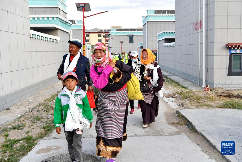 刚刚抵达森布日安置点的双湖县牧民正前往新家(7月19日摄)。