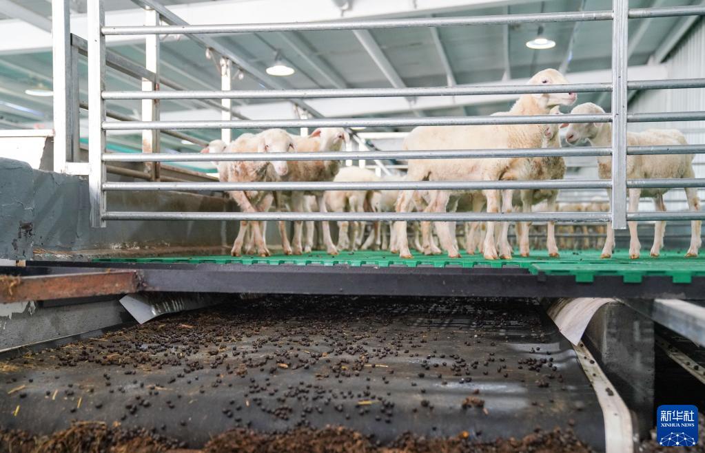 伊春森工铁力林业局公司湖羊生态循环产业园羊舍内的自动清理系统(7月21日摄)。新华社记者 王松 摄
