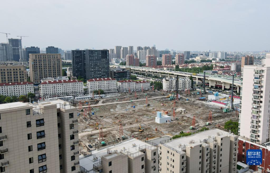 彭一小区旧房改造工程建设工地(7月21日摄,无人机照片)。