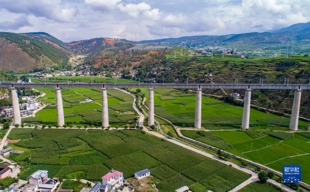 7月22日拍摄的大瑞铁路大保段西山寺特大桥(无人机照片)。新华社记者 陈欣波 摄