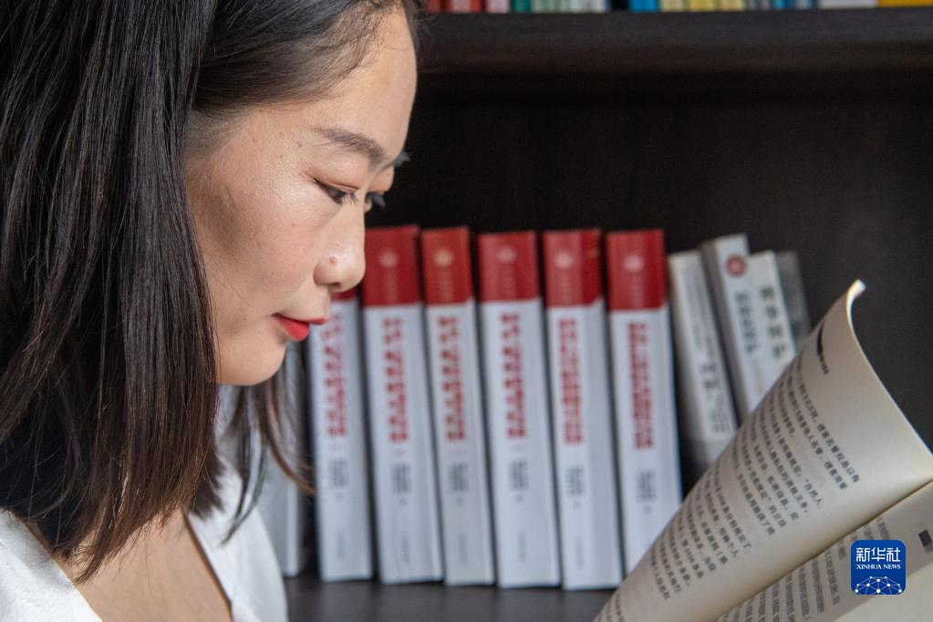 7月21日,在重庆华代律师事务所,谭婷在查阅书籍。