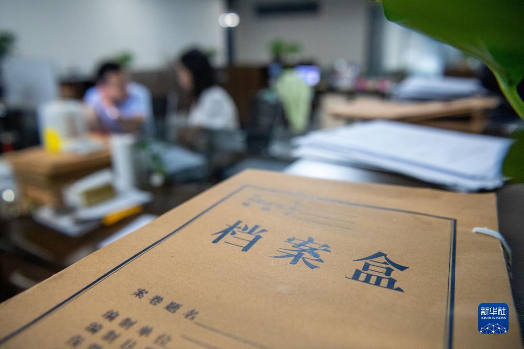 7月21日,在重庆华代律师事务所,谭婷(右)与同事交流。