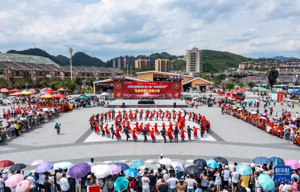 7月22日,人们在毕节市百里杜鹃管理区鹏程街道进行“乌蒙欢歌”广场舞比赛(无人机照片)。