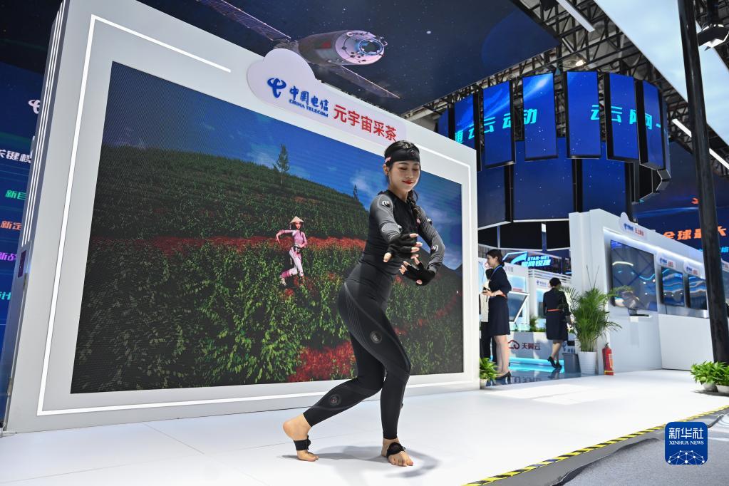 7月22日,工作人员在第五届数字中国建设成果展览会上展示“元宇宙采茶”项目。 新华社记者 周义 摄