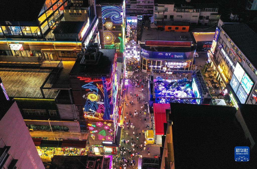 7月22日,游人在贵州省贵阳市南明区青云路改造过后的“青云市集”游览(无人机照片)。