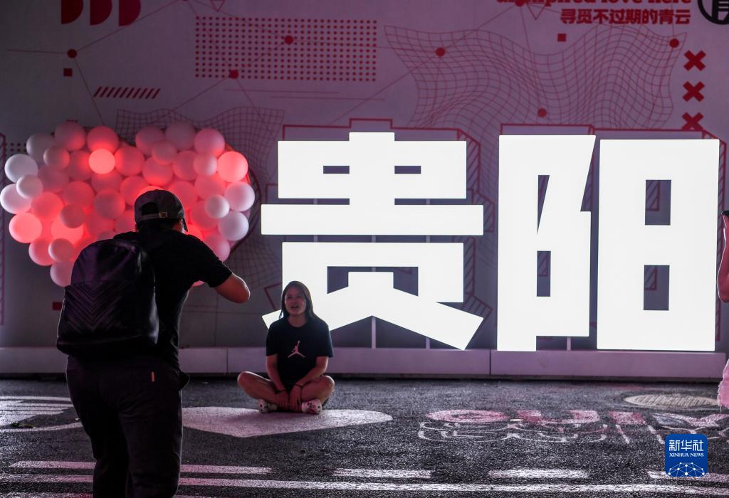 7月21日,游人在贵州省贵阳市南明区青云路“青云市集”里留影。