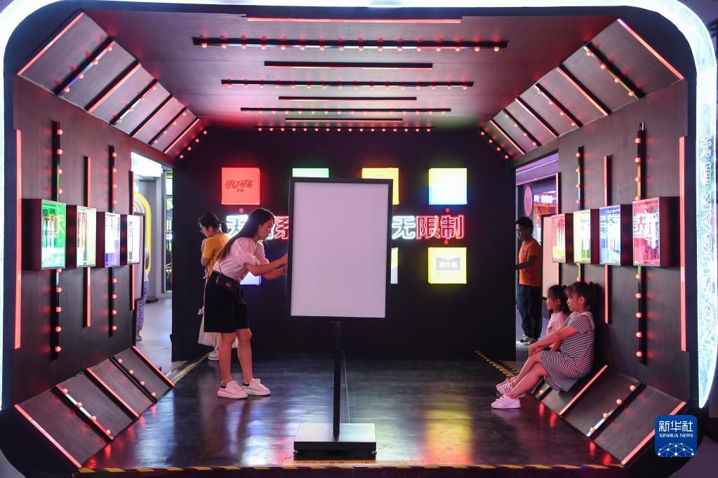 7月21日,小朋友在贵州省贵阳市南明区青云路改造过后的“青云市集”里留影。