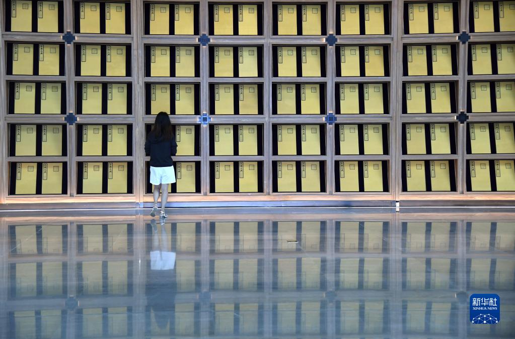 7月23日,参观者在西安国家版本馆内参观。