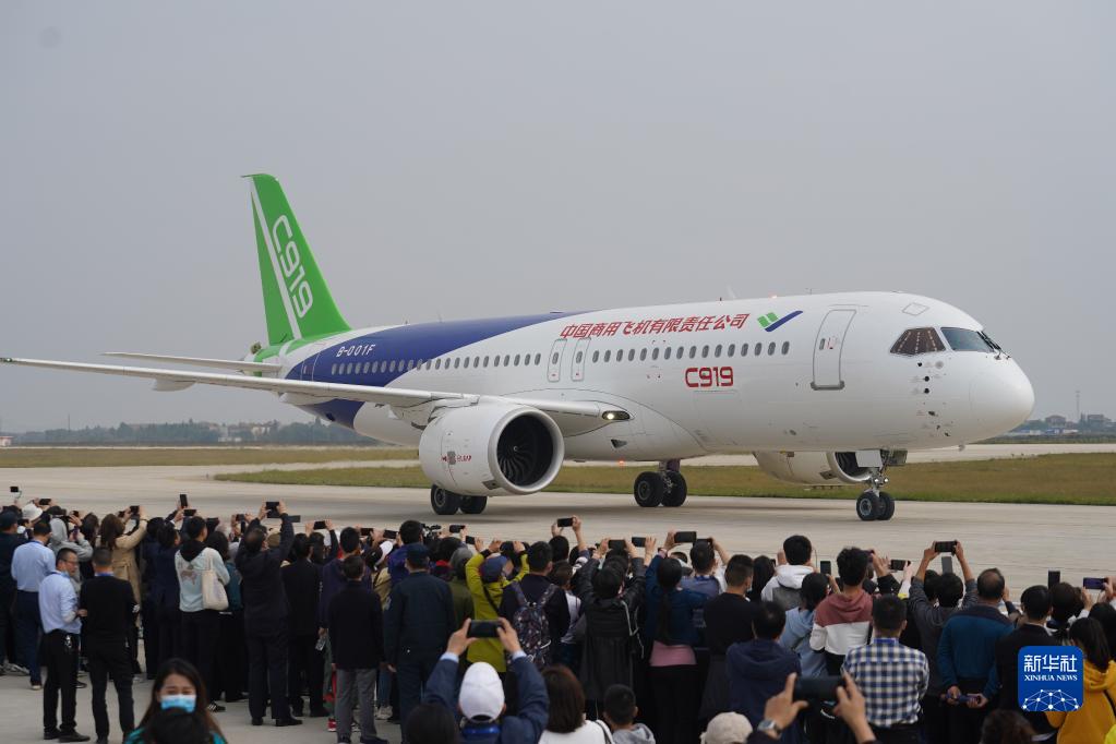 在2020南昌飞行大会上,国产大飞机C919亮相江西南昌瑶湖机场并进行飞行表演(2020年10月31日摄)。