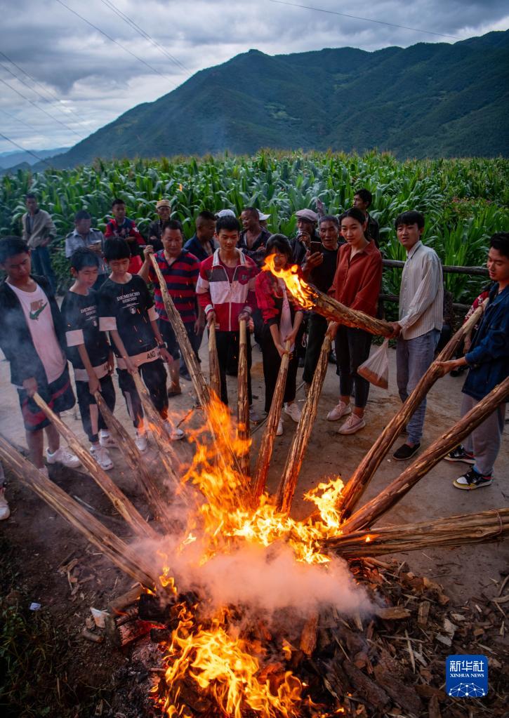 7月23日,云南省南涧彝族自治县太平村村民点燃火把。