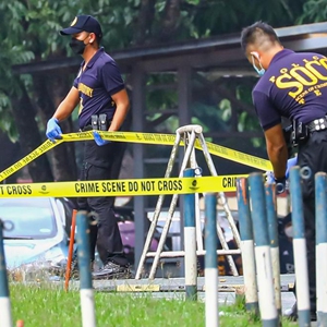 7月24日,菲律宾警察在马尼拉大区奎松市的雅典耀大学枪击事件现场工作。