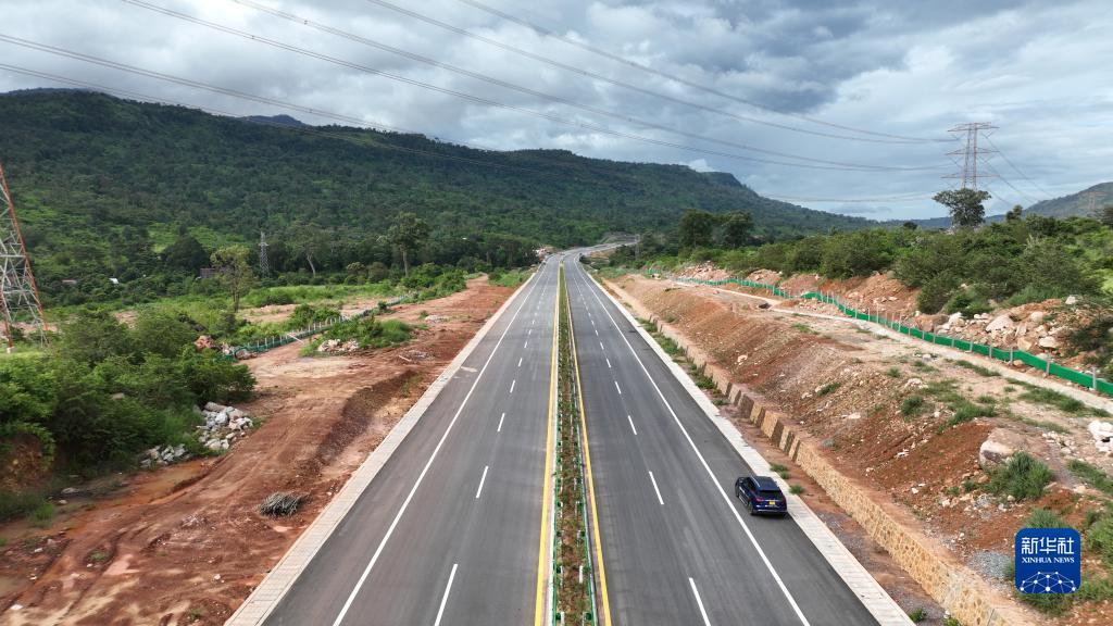 这是7月16日在柬埔寨西哈努克省拍摄的金港高速公路项目(无人机照片)。