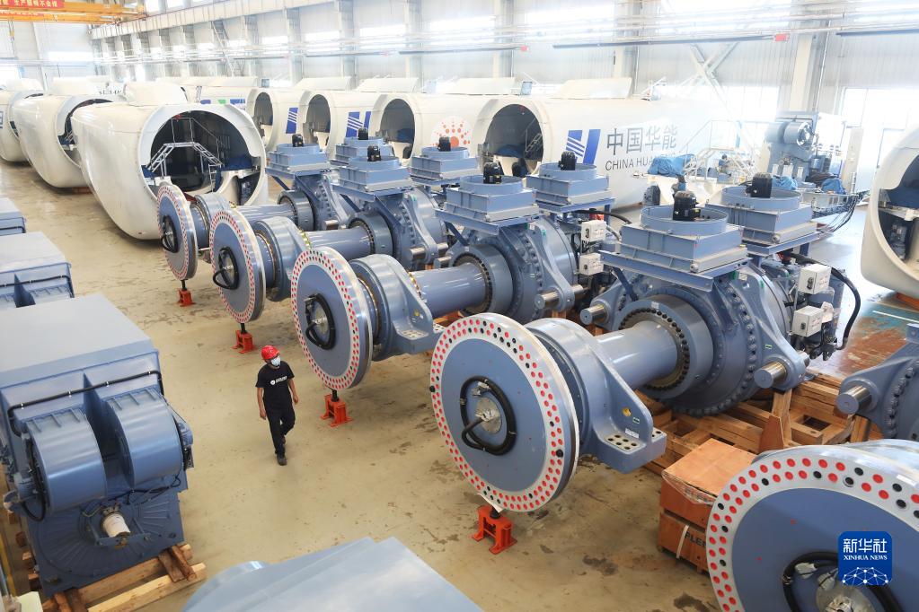 7月25日,工人在张北县一家风电设备公司车间工作。
