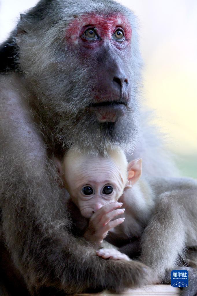 7月23日,在武夷山国家公园腹地桐木村附近,藏酋猴幼崽偎依在成年藏酋猴怀中。