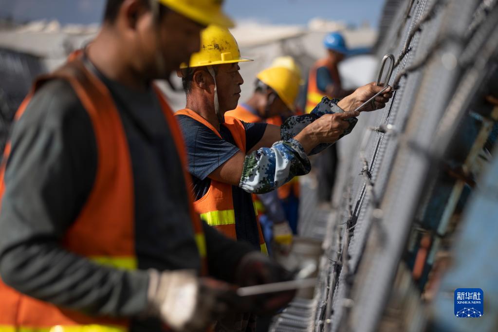 7月25日,在中铁二十二局集团有限公司伊春制梁场,工人在进行施工作业。