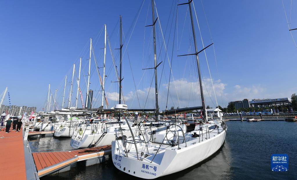当日,第二届中国国际消费品博览会游艇展在海口国家帆船基地公共码头开幕,超过200艘船艇参展。
