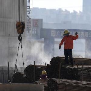 7月27日,在南宁国际铁路港电商物流区建设工地,广西宁铁建筑有限公司工人在施工。