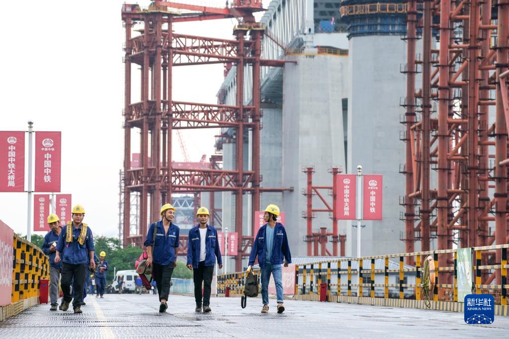 7月26日,建设常泰长江大桥的工人们在上班途中。