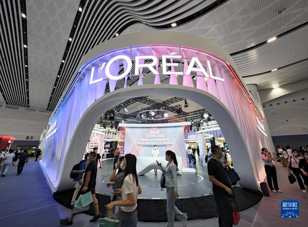 这是消博会上的欧莱雅集团展台(7月26日摄)。