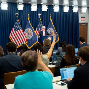 7月27日,美国联邦储备委员会主席鲍威尔在华盛顿出席新闻发布会。