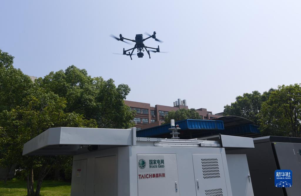 7月28日,无人机从机巢中起飞按照预先设定的线路进行巡检。