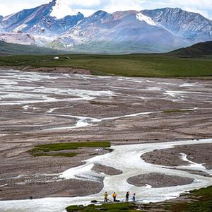 7月26日,来自长江科学院的科考队员在长江源区进行科考工作(无人机照片)。