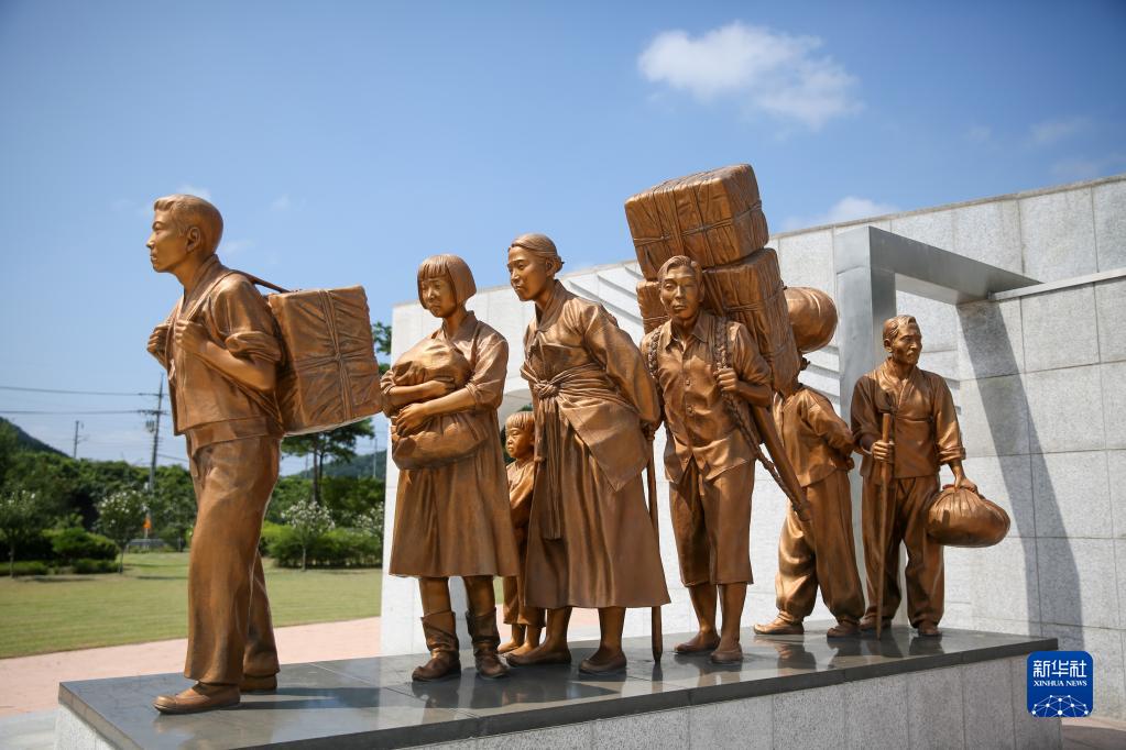 这是7月28日在韩国忠清北道永同郡拍摄的“老根里事件”纪念塔雕塑。