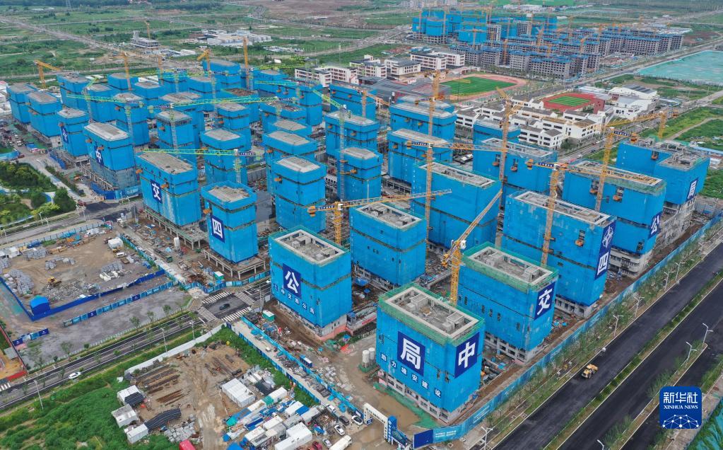 建设中的河北雄安新区启动区中交启园项目(7月28日摄,无人机照片)。