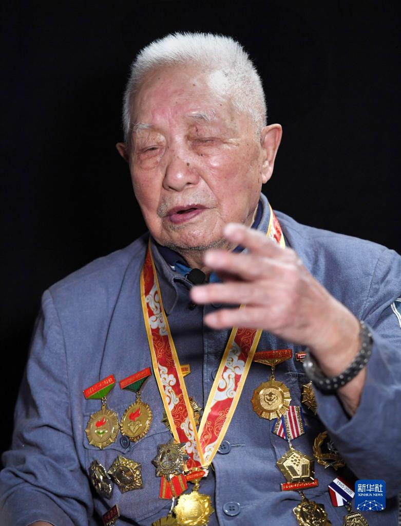 6月8日,在河南省平顶山市,抗战老战士钟飞讲述战斗故事。
