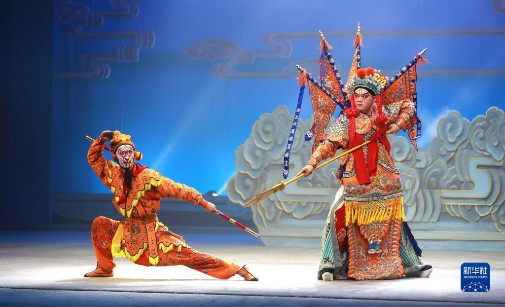 7月28日,演员在秦腔神话剧《西游记之大闹天宫》中表演。